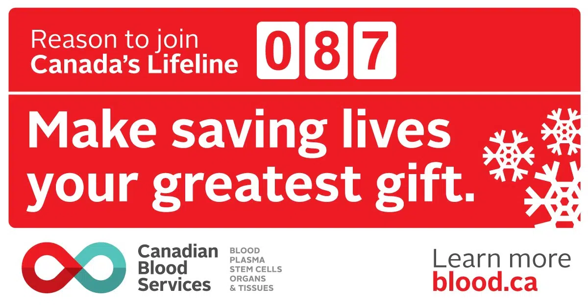 Appointments can be booked in advance online through www.blood.ca, by calling 1-888-2-donate and by downloading the Give Blood App.
