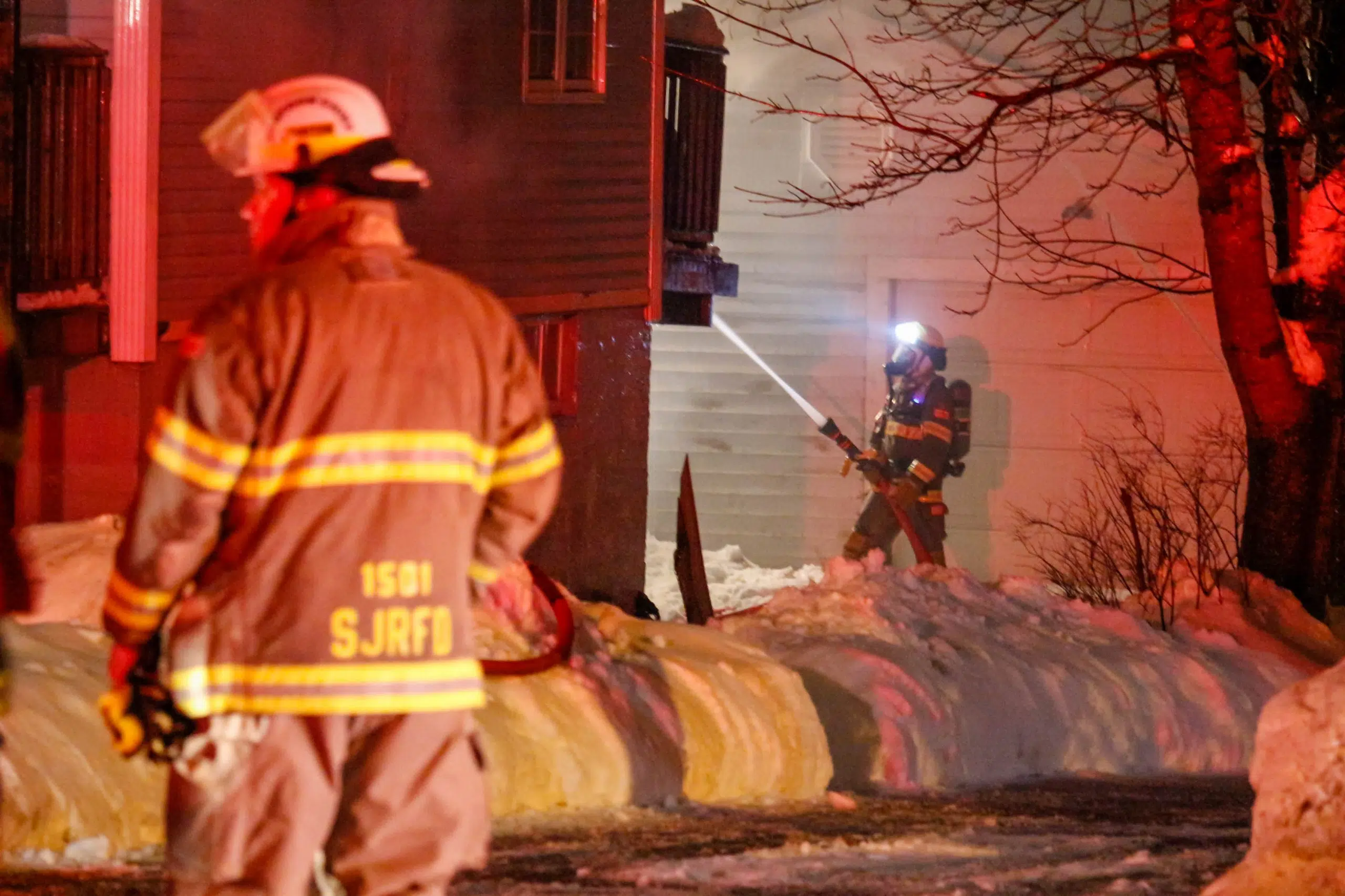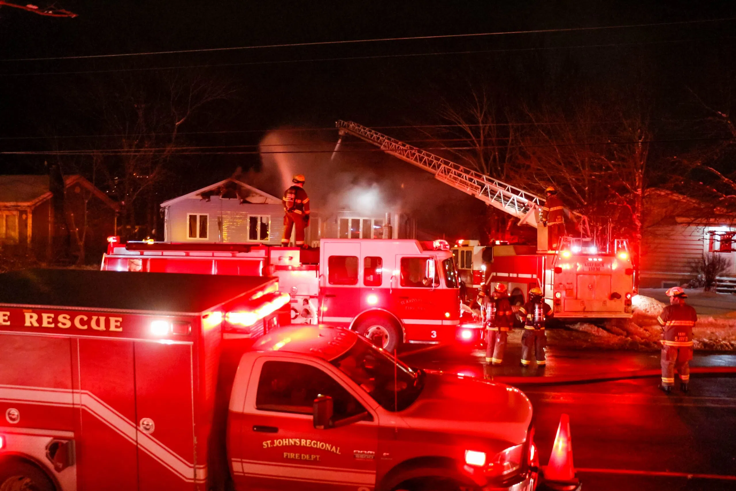 At about 1:45 in the morning, a 911 call was received from a downstairs tenant of number 607 Topsail Road, stating the home was on fire. When firefighters first arrived shortly after they found heavy smoke and fire coming from the dwelling, with the roof already starting to collapse.