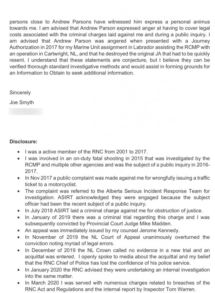 The complaint comes from the former RNC Officer who was at the centre of the Donald Dunphy shooting back in 2015, Joe Smyth.