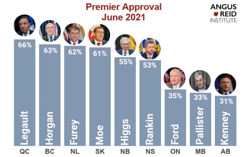 Two of the country’s most prominent premiers have seen big pandemic-related drops in approval ratings. That’s according to the latest leadership approval survey conducted by Angus Reid.