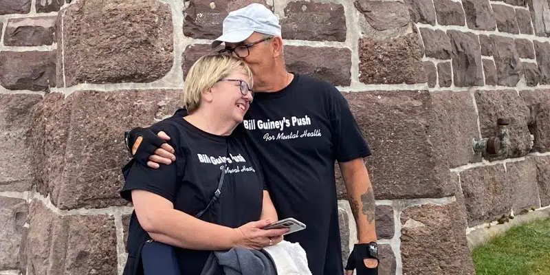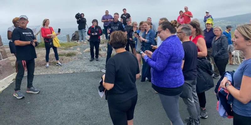 Bill Guiney started in Port aux Basques a few weeks ago, doing 10 pushups for every kilometre completed. He arrived at Signal Hill with a police escort, and a large crowd of people walking in support of him and his cause.