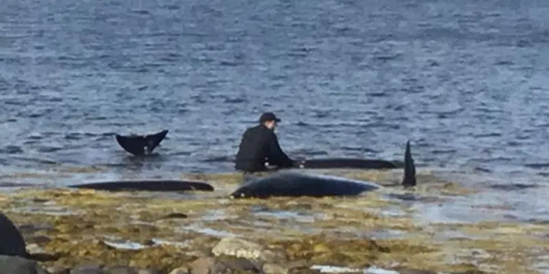 The efforts of three local provincial wildlife officers in helping to save a pod of pilot whales which had become beached near Embree in Notre Dame Bay was recognized in the House of Assembly this week.