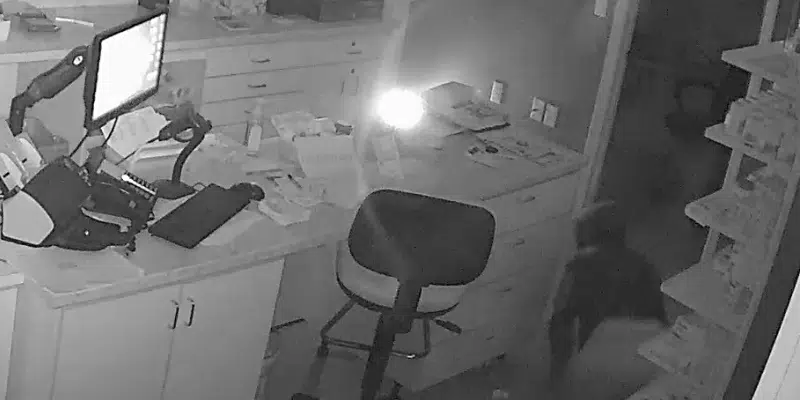 Somebody broke into the Valley Pharmasave in the early-morning hours Tuesday by busting through a wall of the adjoining Western Health building. Surveillance footage shows one person inside the pharmacy.