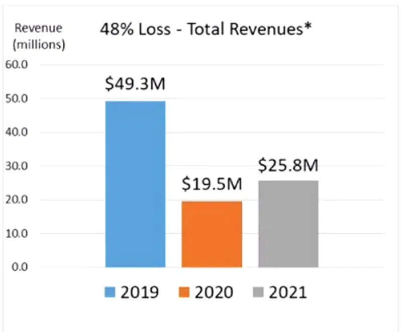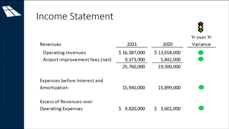 Revenue was in the range of $19.5 million in 2020. However, because of government support, they were able to maintain financial stability. Without the support, the airport would’ve seen a net loss of $9.9 million. They predict a loss of $4.4 million for 2022.