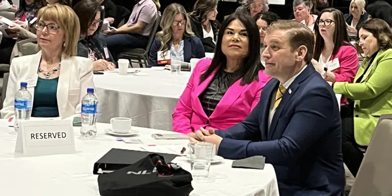 Premier Andrew Furey and Minister Lisa Dempster address the NLOWE convention in St. John’s this morning.