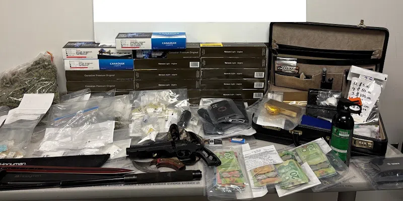 RCMP, with the help of police dog Thor, searched a home on Hillview Avenue on Wednesday, and seized a quantity of drugs, cash and weapons.