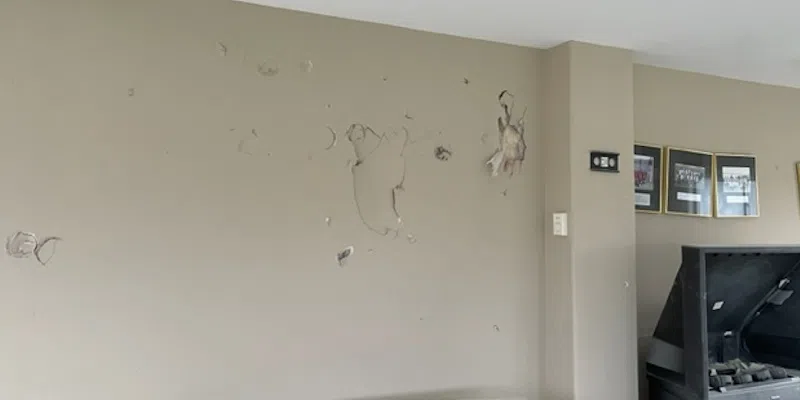 He says someone emptied the fire extinguishers in there, and when they were done, beat up all the Gyproc with the cannisters, even smashing the big screen TV they had. He says the town secured the building while assessing the damage, and someone got in the next night and destroyed the toilet bowls and took the paint used for the lines on the field and “destroyed that altogether.”