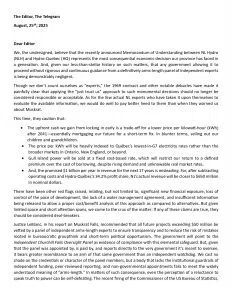 Former politicians, high-ranking civil servants and business people say the MOU must be restructured with each component addressed on a stand-alone basis. They call the MOU the biggest strategic error in the history of Newfoundland and Labrador in that it hands Hydro Quebec a monopoly over Churchill River power.
