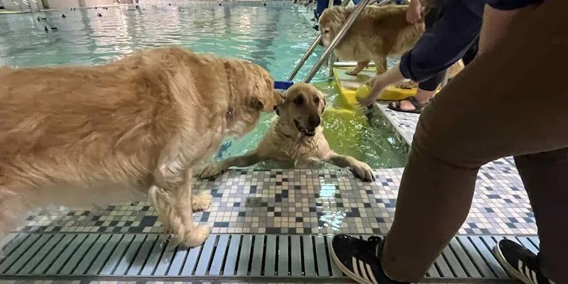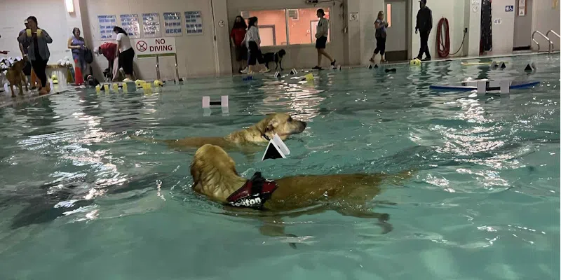 Photos and video posted to social media show several dogs, both big and small, gleefully jumping into the water to the joy of those watching from the pool deck.