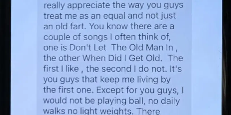 Nelson Bradbury, a member of the Mount Pearl Slo-pitch Softball League, sent a text to his teammates letting them know how he really appreciates “the way you guys treat me as an equal and not just an old fart.” He goes on to say, “except for you guys, I would not be playing ball, no daily walks, no light weights. There would be no reason to do those things. It’s all of you who keep me going and give me the reason to get out of bed in the morning.”