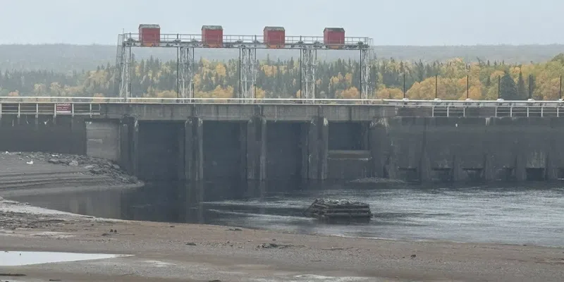 Low water levels at the Exploits dam (with permission from Route 370- NL News & Weather on Facebook)