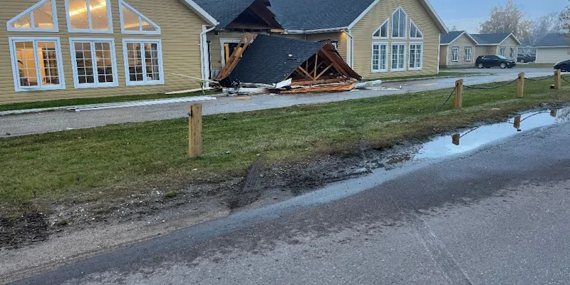 The crash caused a front veranda to crash to the ground, but there were no injuries.