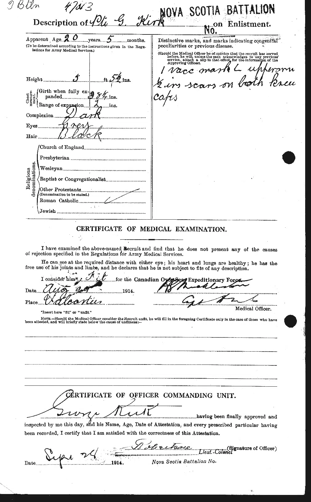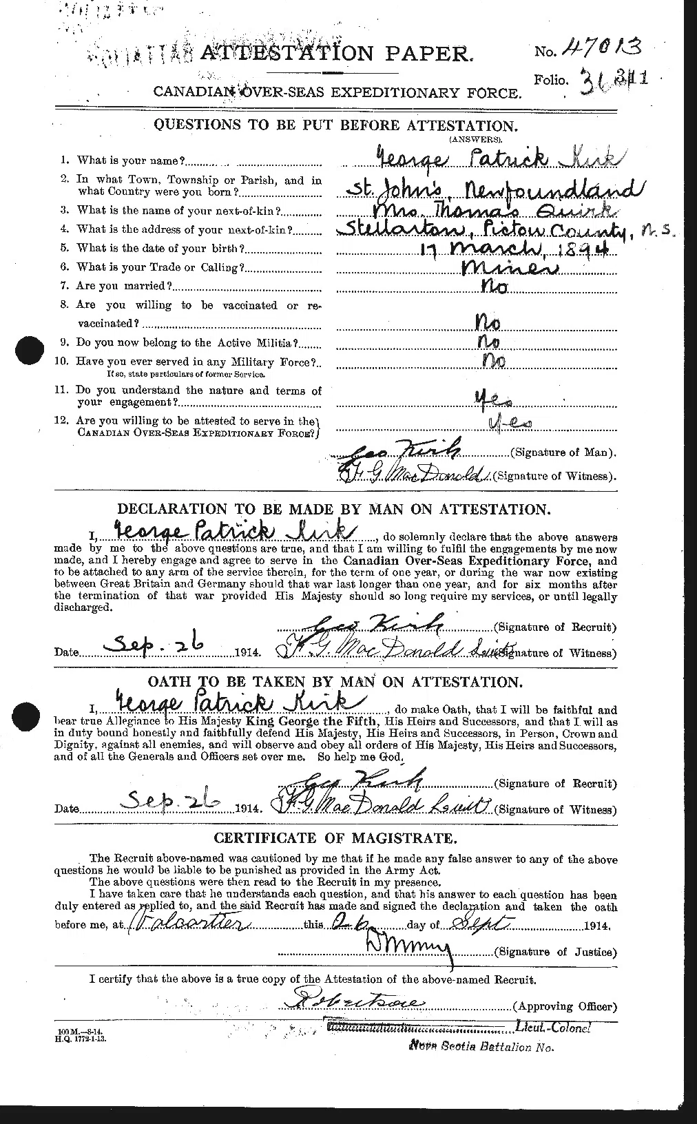 The soldier’s remains were buried in Lens in northern France after he was killed on the first day of the Battle of Hill 70 on August 15, 1917. Through a process of elimination he was identified as Private George Patrick Kirk or Quirk of St. John’s.