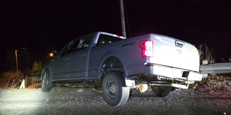 The stolen pickup off the road (RCMP)Police were then called after the stolen pickup crashed on Brook Street in Stephenville Crossing a short time later.