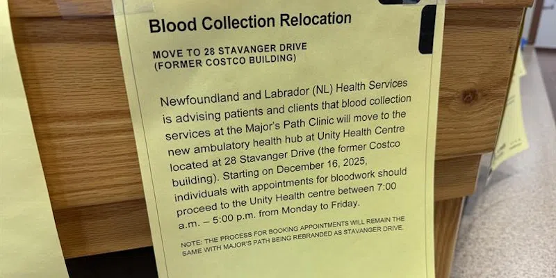 Blood collection services are moving from the clinic on Major’s Path in St. John’s to the new ambulatory health hub in the old Costco building in the city’s east end.